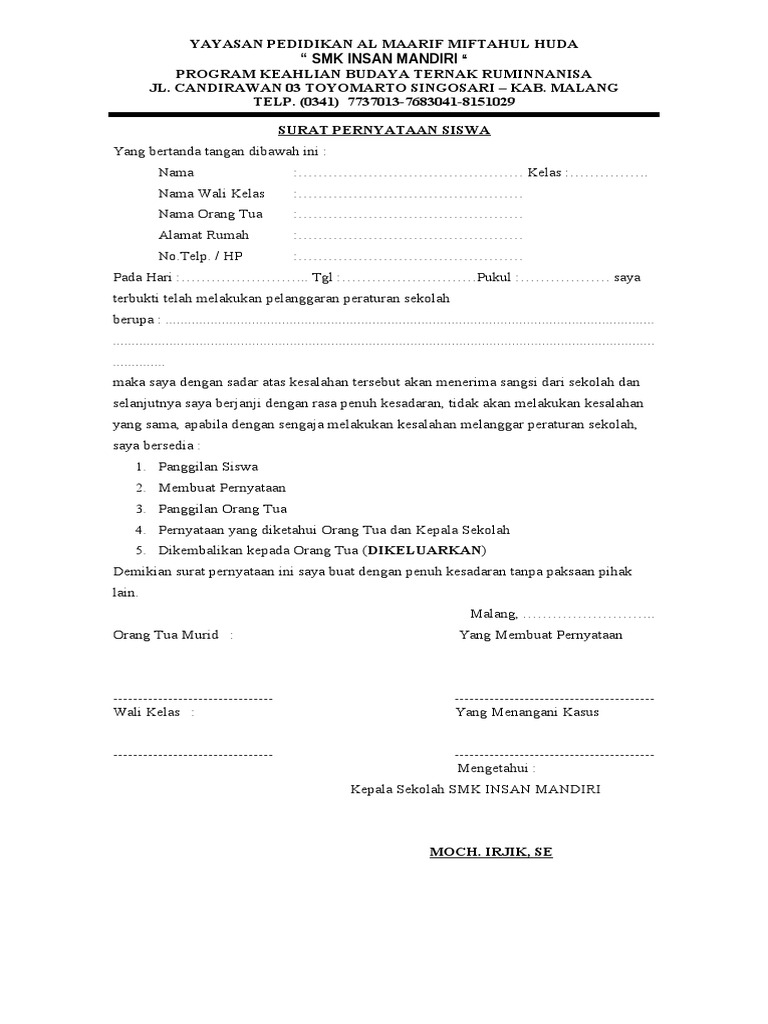 Contoh surat pernyataan siswa baru smk. We did not find results for: Check spelling or type a new query. Maybe you would like to learn more about one of these?